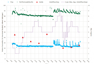 • 處理結(jié)果:平均流速=15gpm,原水濁度=28~180,產(chǎn)水SDI<3,平均通量=20gfd,平均回收率>90%